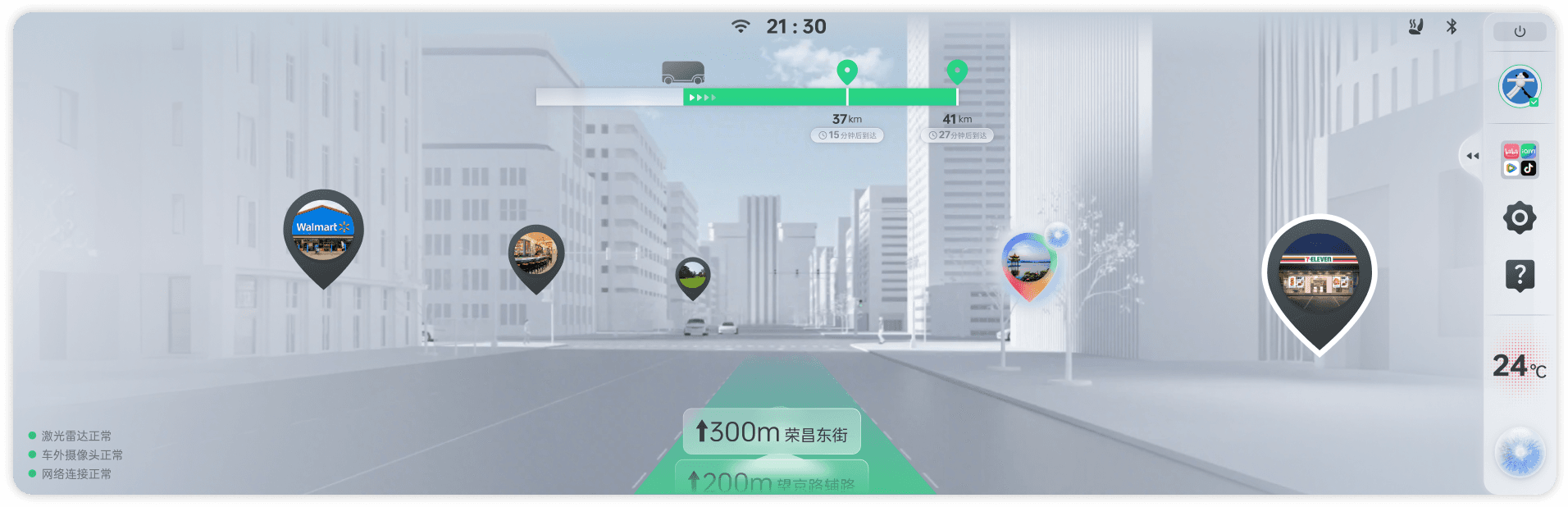 收起媒体内容时则可切换到全屏地图模式,显示POI以及增强现实地图,AI助手成为游客的智能导游